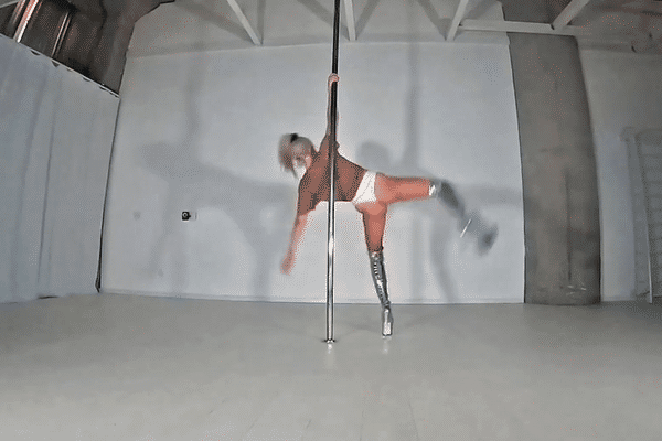 Required Moves: Split grip straddle, pike step overs, pole elbow stands, one-armed handstand variations, reverse backhand grab to climb, apprentice to anchor, pirouette variations, cup grip and twisted grip shoulder mount and be able to invert to leg hang, and plastic strip acro moves.